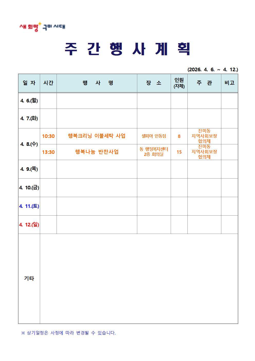 [진미동] 주간행사계획표(2026.4.6.~4.12.)