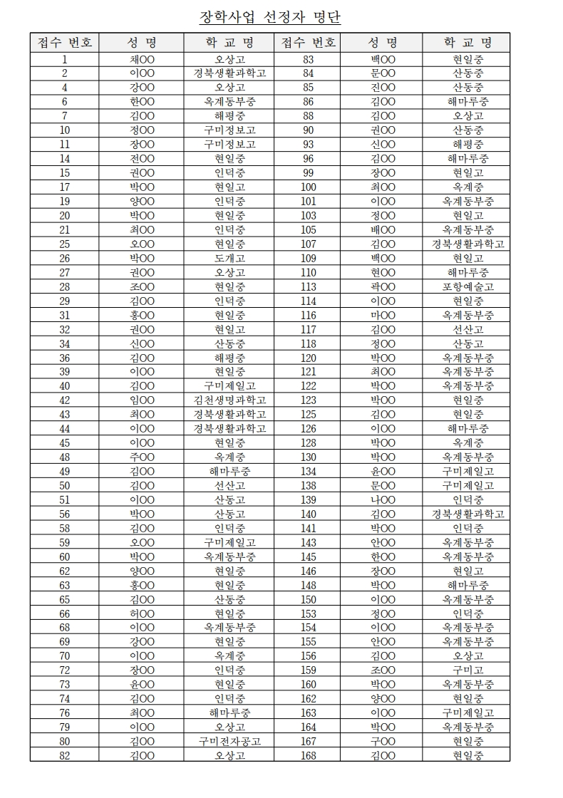 2025년 구미천연가스발전소 장학금 대상자 선정 결과