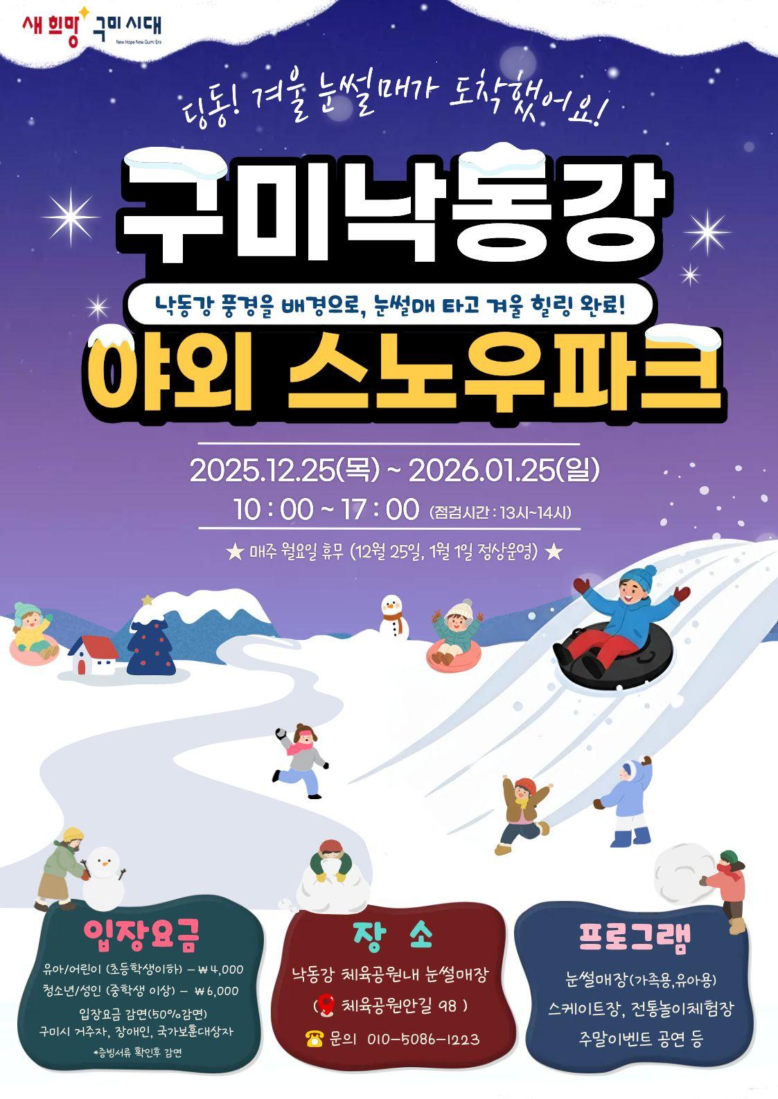 2025년 구미 낙동강 야외 스노우파크 개장 안내