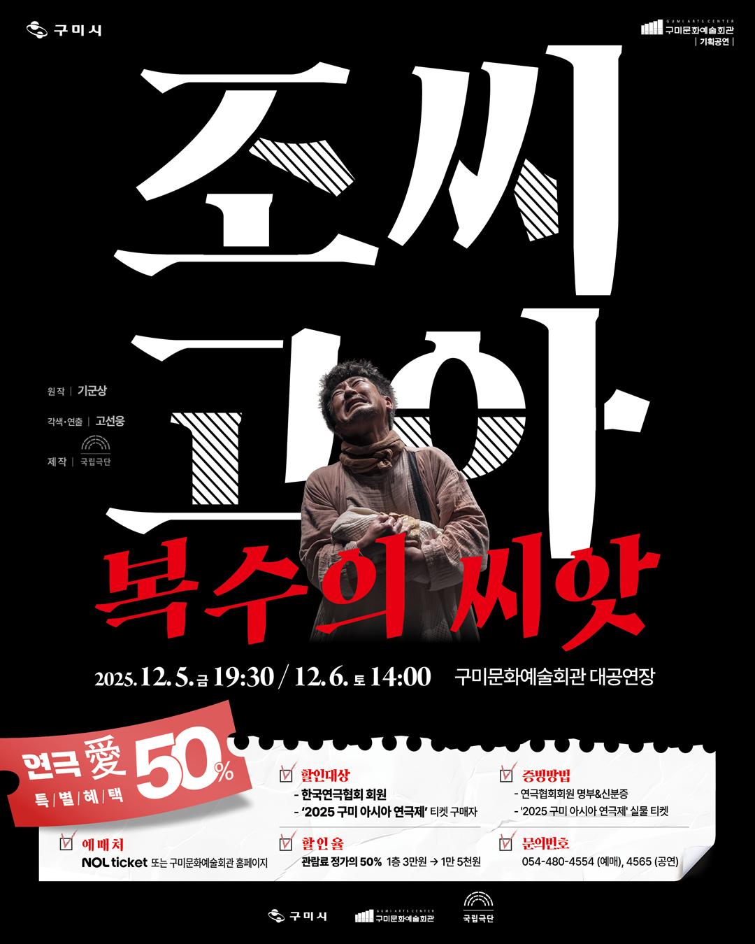 구미문화예술회관 기획공연 '조씨고아, 복수의 씨앗' X 2025 구미 아시아 연극제 특별할인 혜택 안내