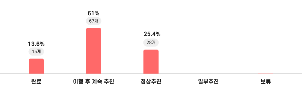| 구분 | 완료 | 이행 후 계속추진 | 정상추진 | 일부추진 | 보류 |