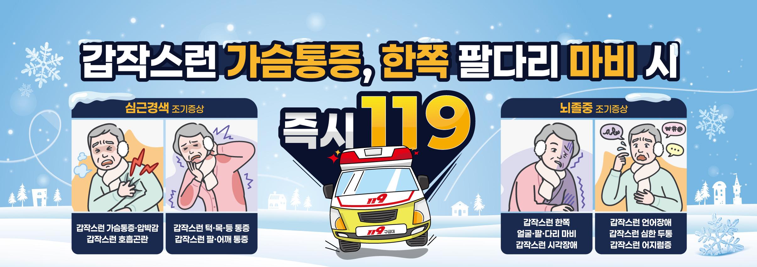 갑작스런 가슴통증, 한쪽 팔다리 마비 시 즉시 119!