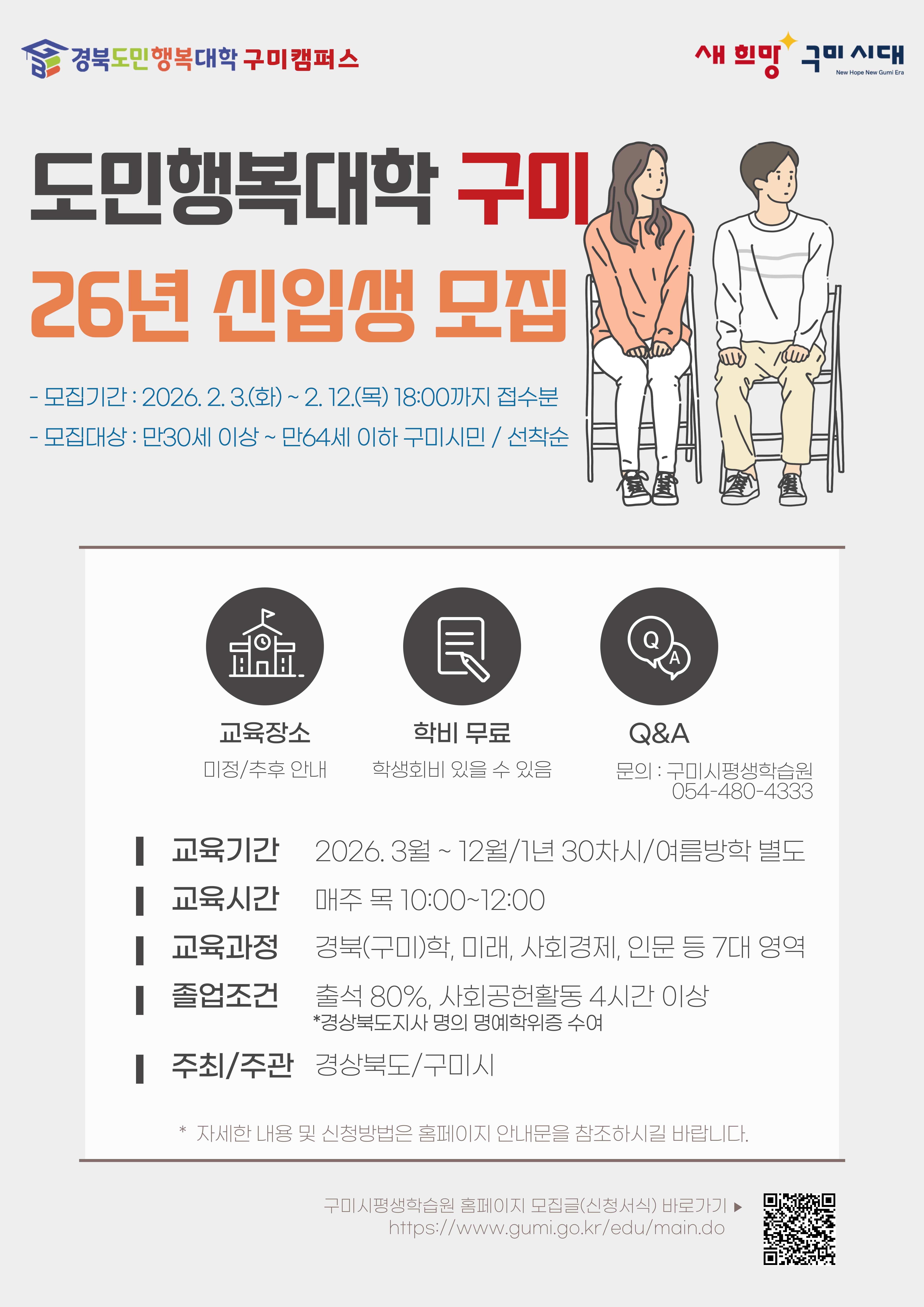 경상북도와 구미시가 지역자원을 활용, 지역사회 인재(리더)를 양성하고자 관학협력의 평생학습대학 모델을 구축하고 구미시민을 위한 체계적이고 수준 높은 평생학습 기회를 제공